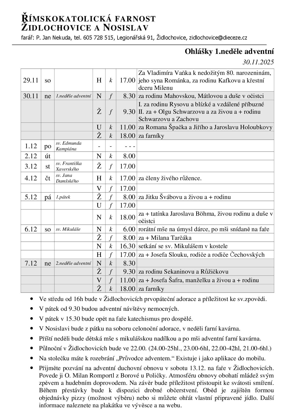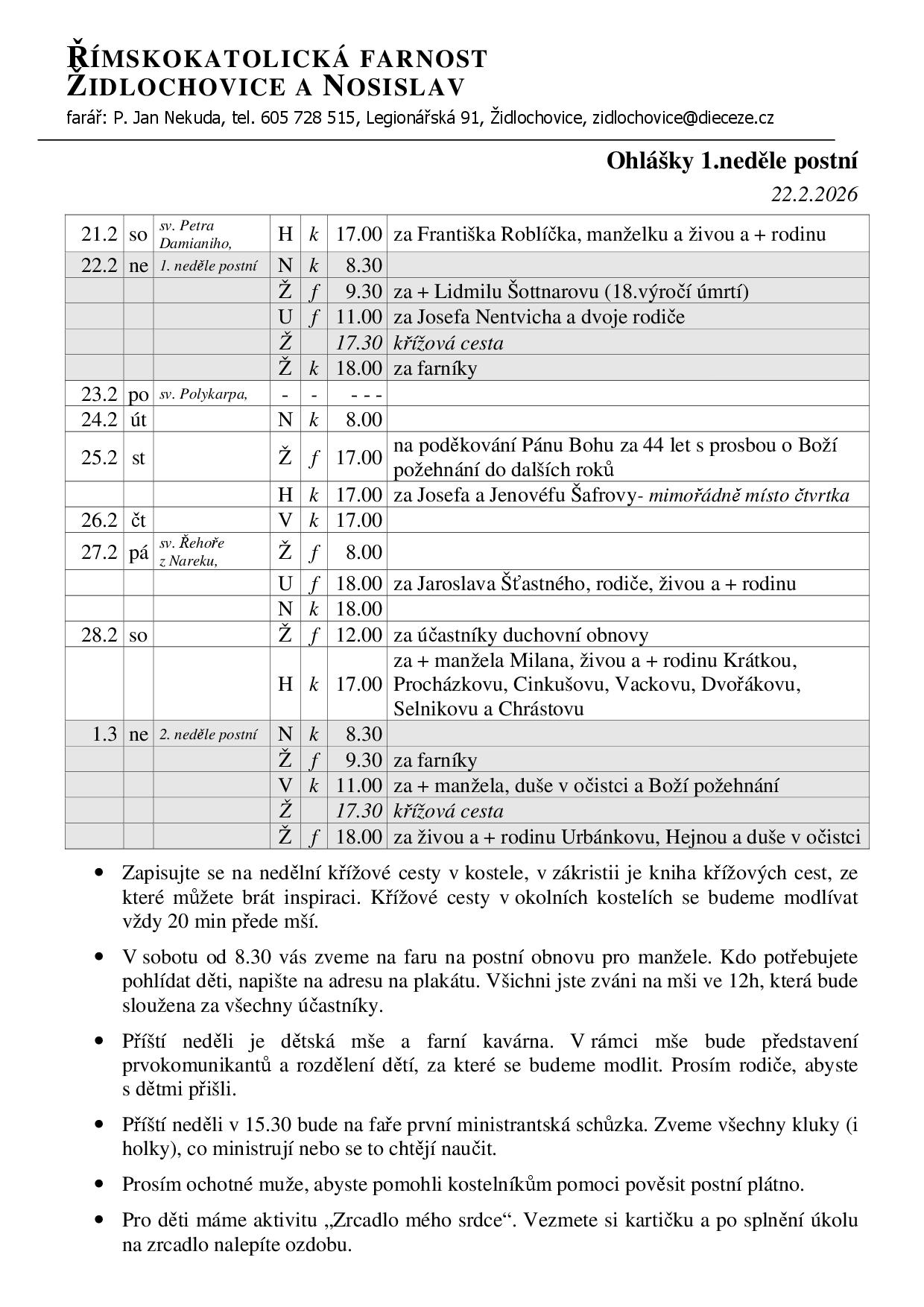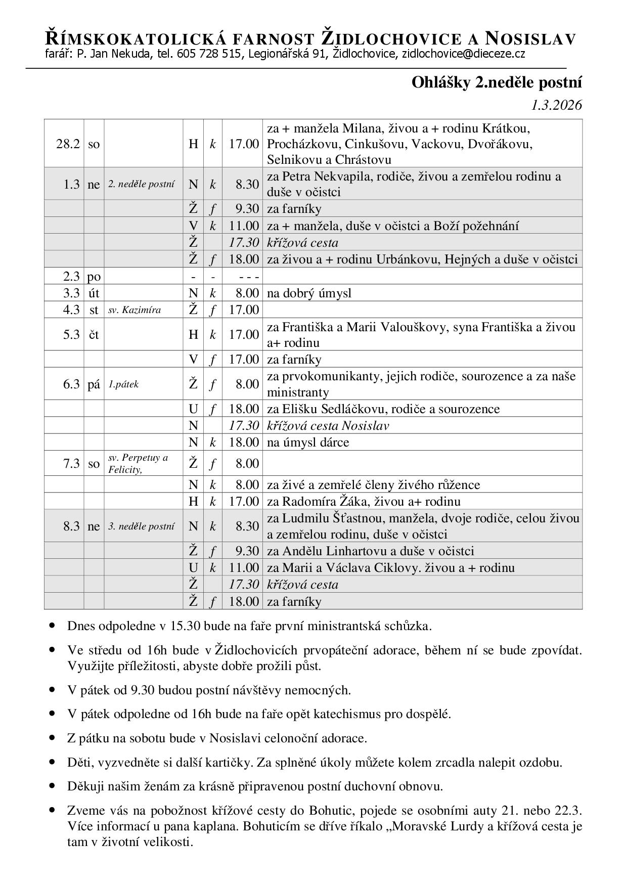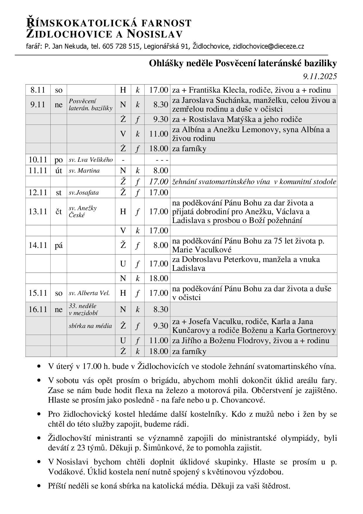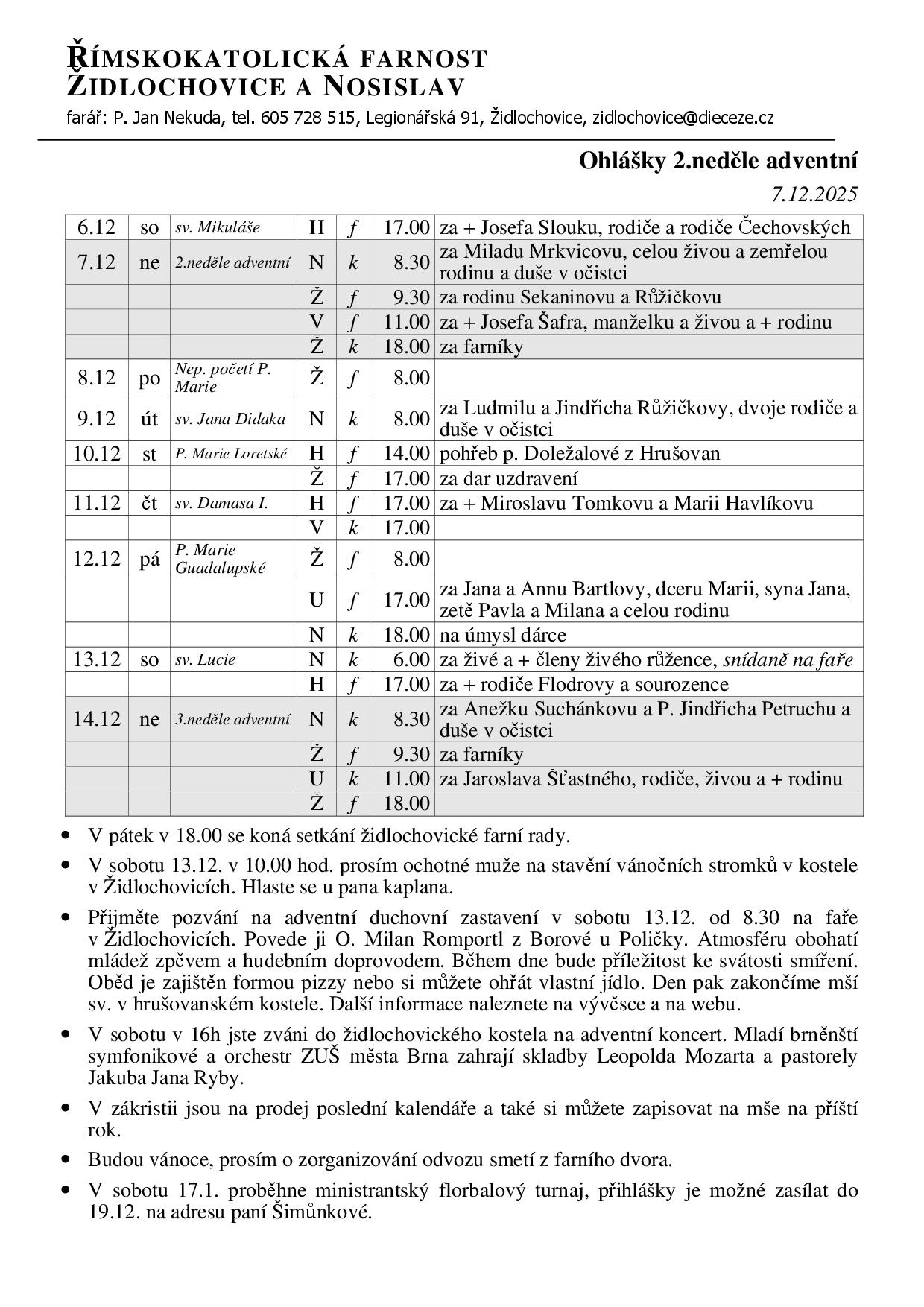 18.00 Židlochovice za všechny živé a zemřelé farníky a dobrodince našeho kostela,...