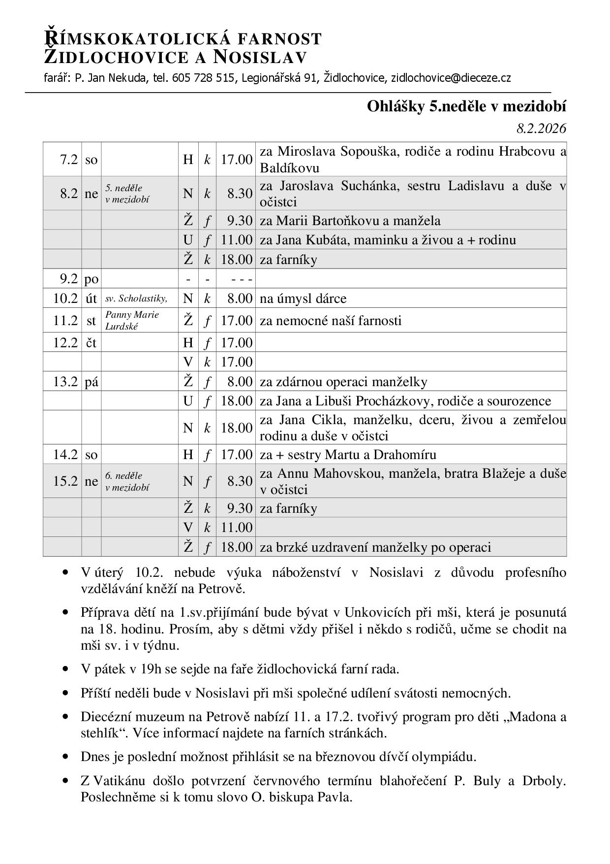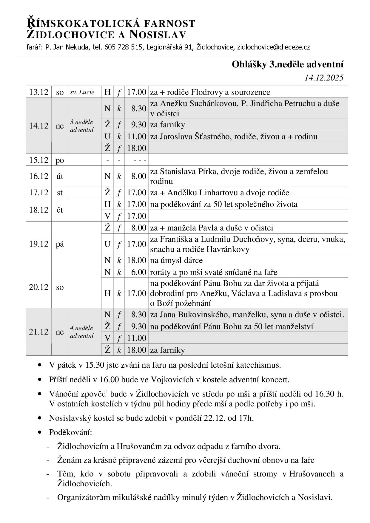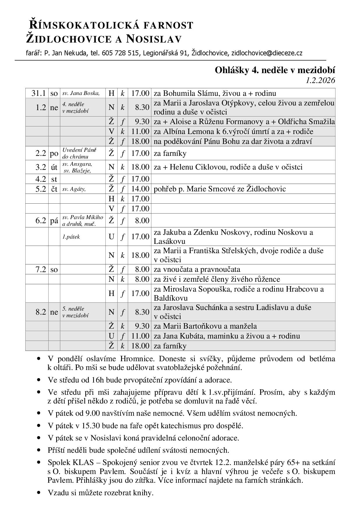 9.30 Židlochovice za živou a + rodinu Vágnerovu a Kročilovu,