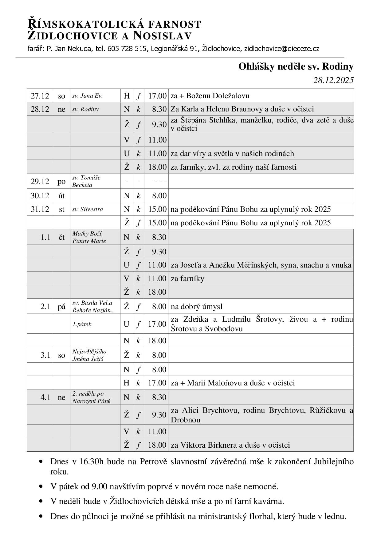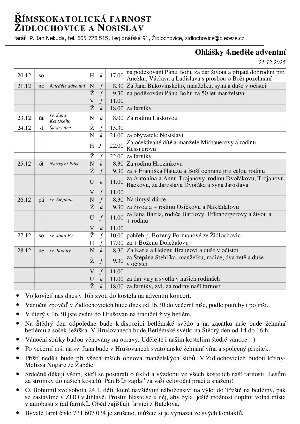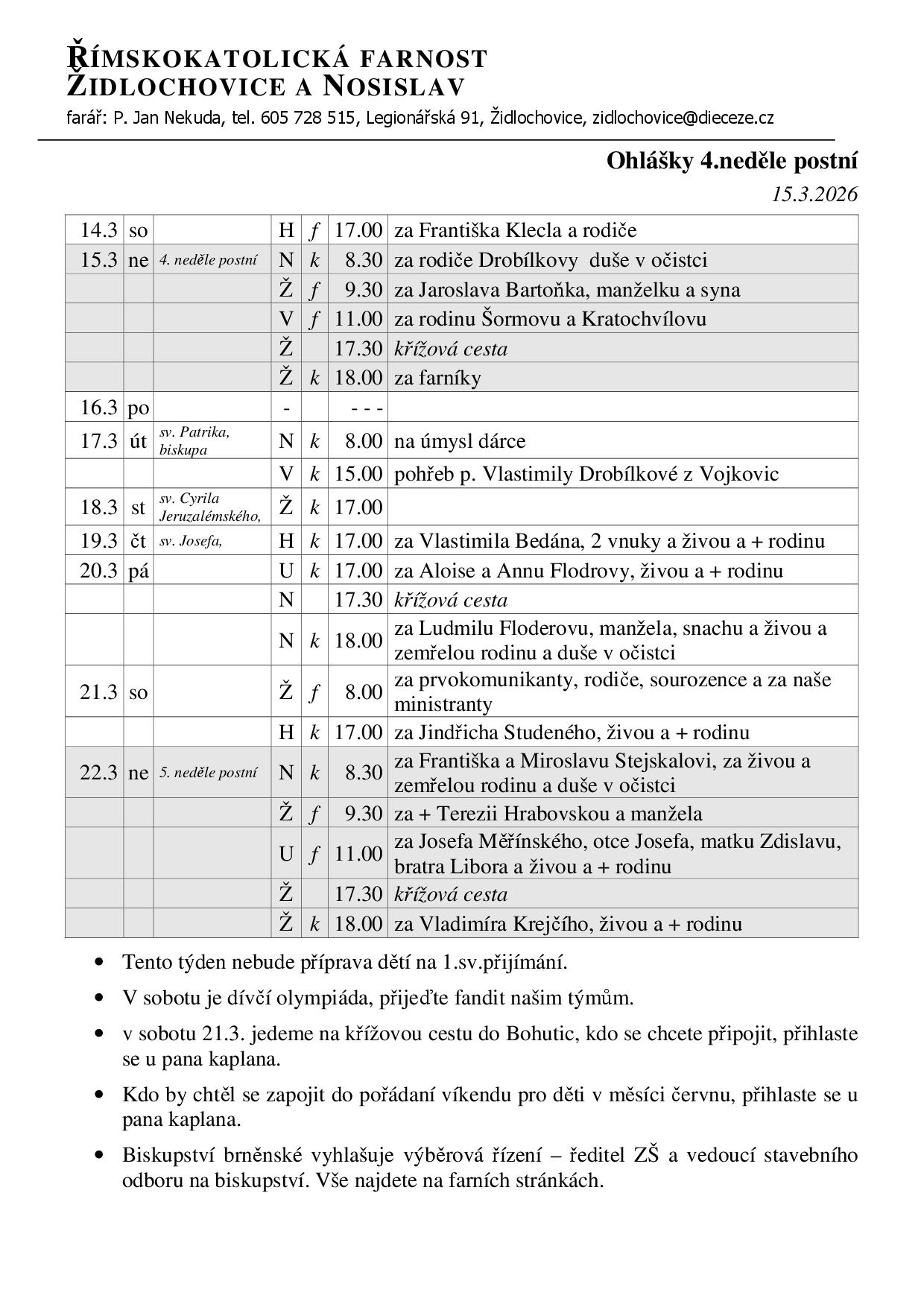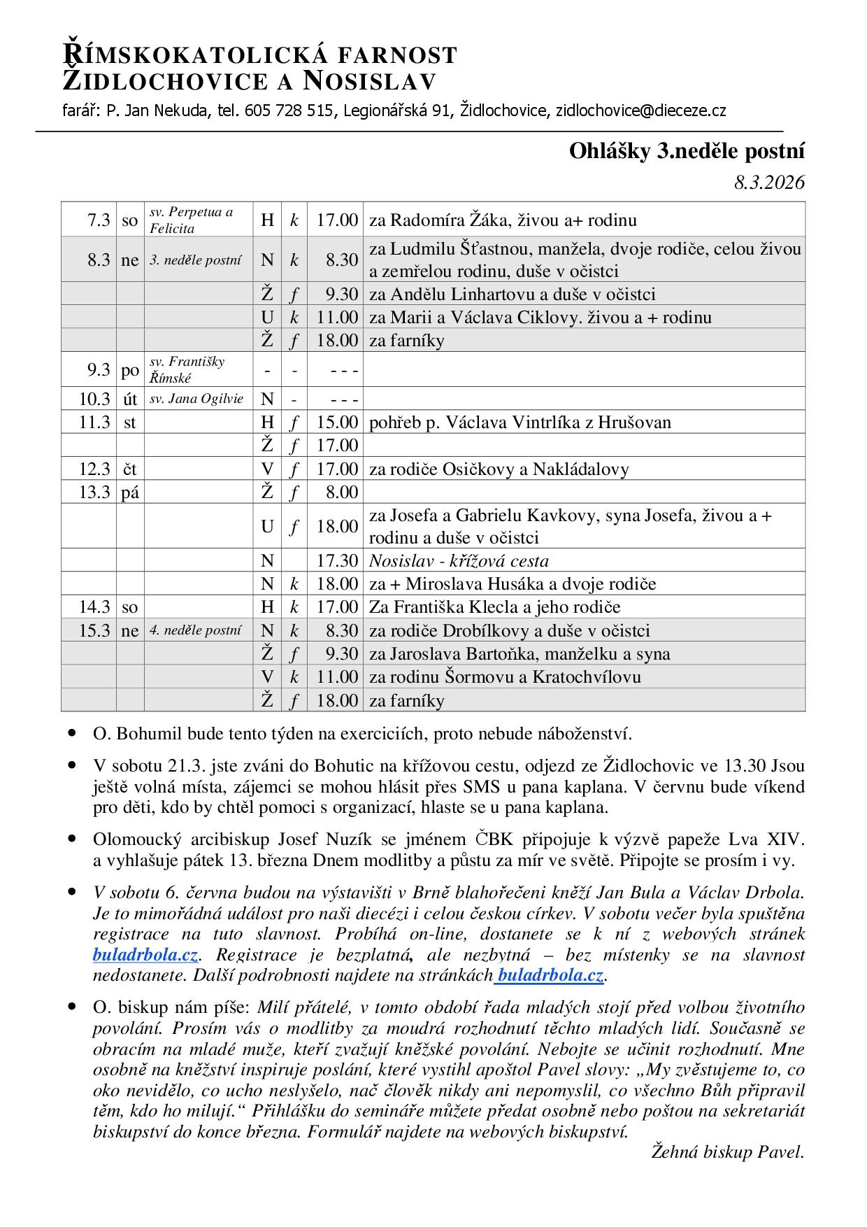 9.30 Židlochovice za živou a + rodinu Vágnerovu a Kročilovu,