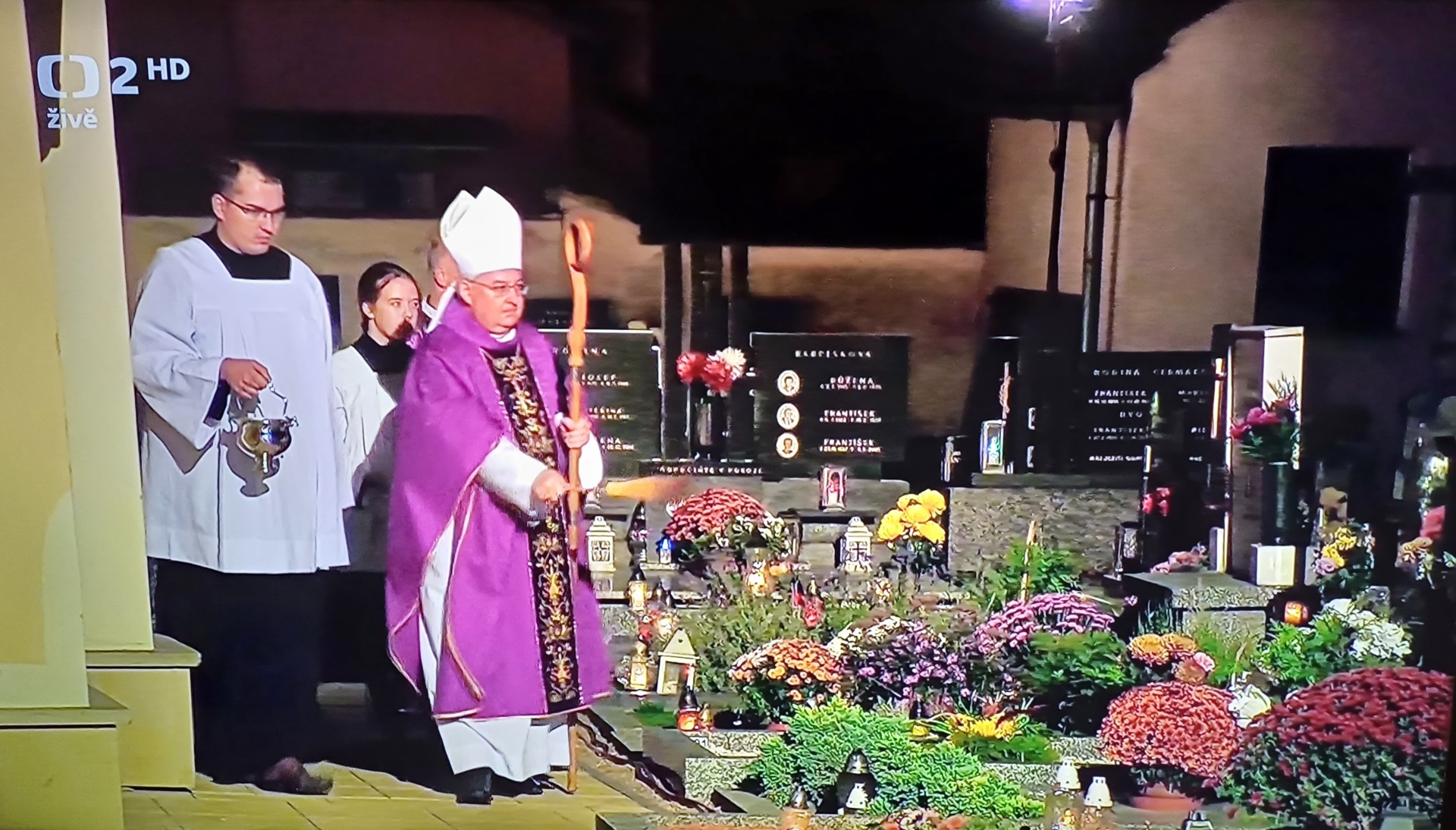Fotografie ze mše z kostela Nanebevzetí Panny Marie v Unkovicích, která byla přenášena ČT2. Na den 2.listopadu připadá památka zemřelých. Modlitba za zesnulé patří k nejstarší křesťanské tradici. Bohoslužbu celebroval Mons. Pavel Konzbul, diecézní biskup brněnský.